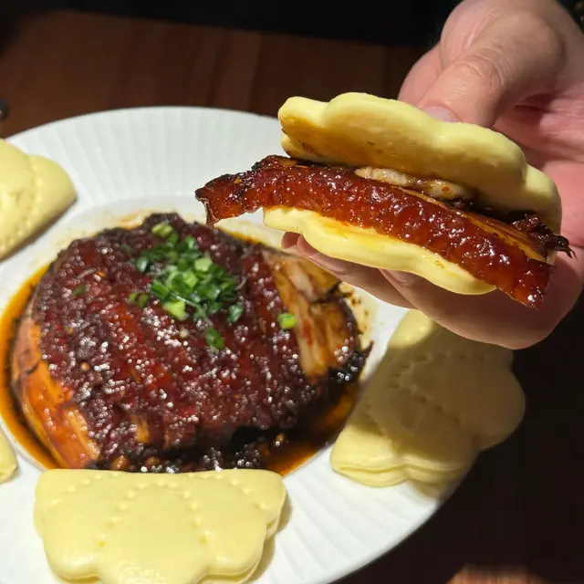 味道帶點微辣🌶,用夾饃包裹著梅菜扣肉,完全減輕肥膩的感覺。