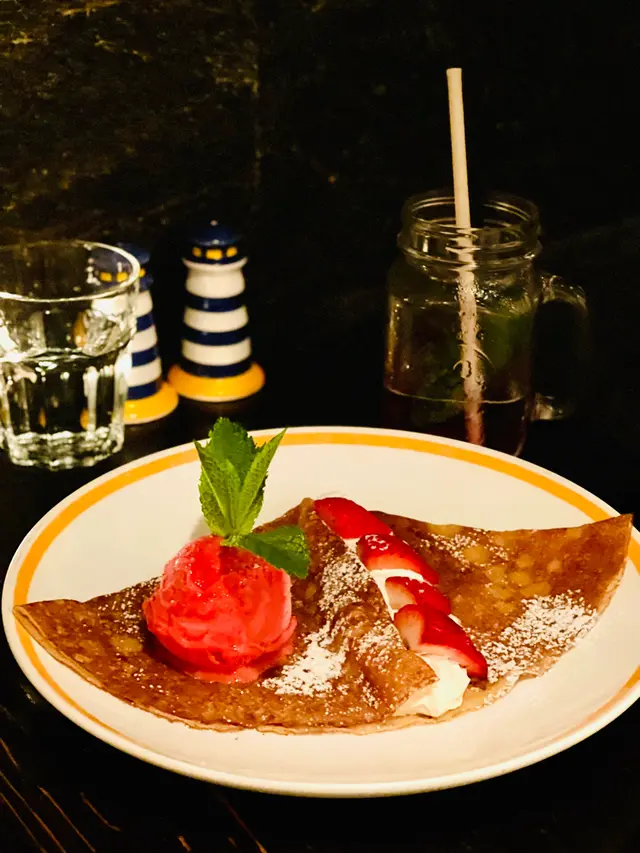 人氣招牌法式可麗餅鹹甜口味加起來超過20款選擇,甜可麗餅Crêpe 用小麥麵粉製成,口感較甜及鬆軟;鹹可麗餅叫Galette,餅皮用蕎麥粉烘製,既有麥香,又有顆粒感,甜度比較低及香脆,可作為一頓飯的主菜。餐廳還供應各式頭盤小食、主菜及甜品等,食物選擇多元化。
