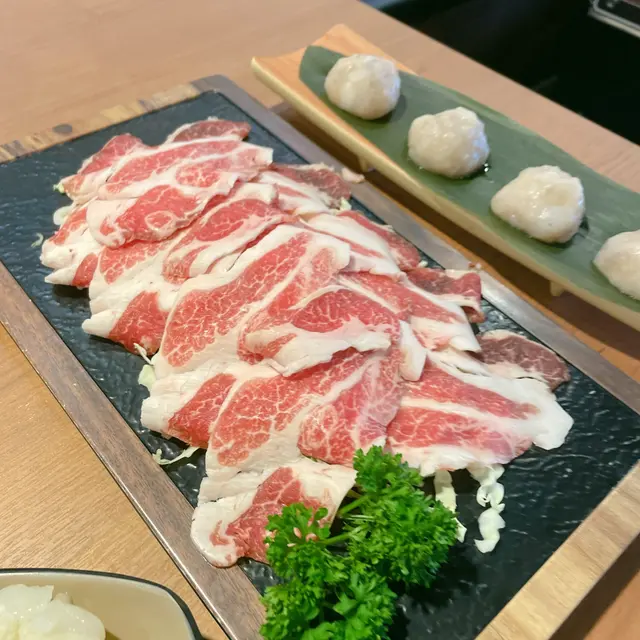 🐖西班牙黑豚肉(❤️❤️❤️❤️) 脂肪紋理靚到發光!薄切片涮8秒即刻食,麻辣湯底令豚肉甜味更突出,肉質彈牙無渣,姊妹話「好似食緊辣味和牛」🤤 清湯涮就食到原汁原味,兩種食法都咁正