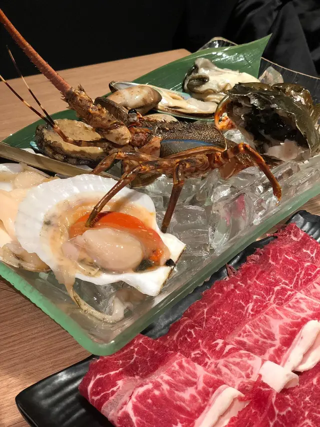 嗌左個海鮮拼盤+美國頂級牛小排,湯底方面就嗌左日式豆乳湯同四川麻辣湯。