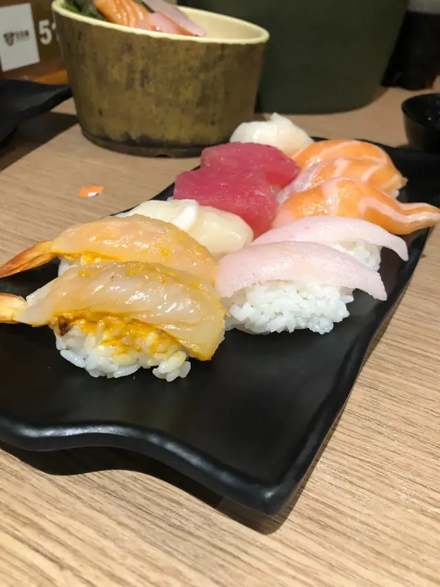 三文魚、赤貝同甜蝦大路野都中規中矩,鯛魚同埋油甘魚就好鮮甜!!食完我地都再encore左一轉。