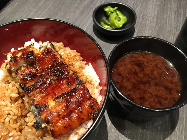 有日本炭燒鰻魚飯專門店在香港開店,急不及待要去試食,每次去日本都會去不同店舖吃鰻魚飯,在店外排隊時一陣陣炭燒鰻魚香撲鼻更令人期待,可能名代宇奈抽油煙機超強力,沒有燒鰻魚香以致要找店舖位置。已經過了午餐繁忙時段,店內食客不多,鰻魚飯套餐有碗特濃麵豉湯及漬物,兩樣都超鹹,喝了兩口已經放棄了,期待的炭燒鰻魚飯終於端上餐桌,鰻魚燒得剛剛好,表面外脆內軟又肥美,醬汁足夠,再灑下七味粉一起吃,好滿足喔,色味都有,稍嫌未夠香味四溢。