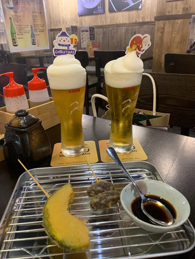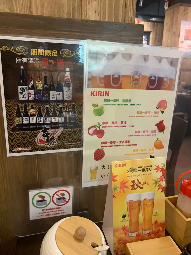 而家做緊啤酒買一送一嘅優惠,仲有季節限定嘅味道揀。揀咗青蘋果同埋白桃味,水果嘅味道非常容易入口,上面嘅泡泡有沙冰嘅口感,非常適合女性飲。