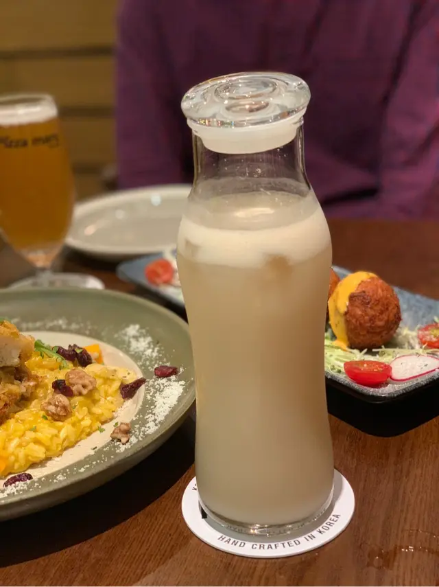 韓藉店員介紹我地新出嘅menu,我地叫咗個炸軟殼蟹意大利飯,份量好多好多,足夠兩個人食。炸軟殼蟹真係無講笑啖啖肉,炸粉好薄好薄。我最鍾意佢加入咗乾果,甜甜地為意大利飯添上層次。