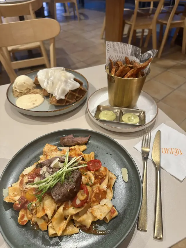 為了糯嘰嘰窩夫去了n次尖沙咀cafe llccc0613Level 22024-10-08919 views Follow 茄汁慢煮和牛手工義大利寬麵 🍝 我真的很久沒吃過這麼出色的意粉 和牛嫩嫩的超入味 寬麵也超級彈牙 . 男朋友最愛的炸番薯條 這家竟然有四種醬料選 整個感覺好高級 最最出色的一定是他家的焙茶麻薯窩夫🧇 媽耶我這個焙茶胃跟糯嘰嘰頭號粉絲真的 這真的巨巨巨好吃 沒想到麻薯跟窩夫這麼配 窩夫上的焙茶醬 配上一旁的花生碎、花生醬跟雪糕 絕配!這家店必吃!The above review is the personal opinion of a user which does not represent OpenRice's point of view.LikeShare為了糯嘰嘰窩夫去了n次尖沙咀cafe Ukiyo https://s.openrice.com/QrKT0QpvN00Report Post Ratings5Taste5Decor5Service5Hygiene3ValueDining MethodDine In