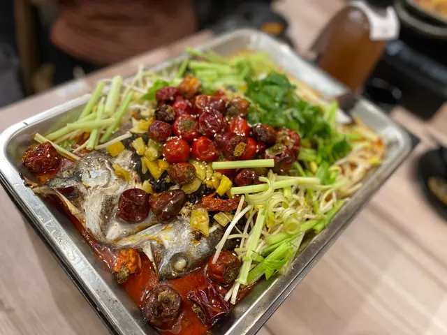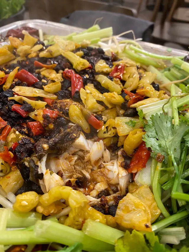 本身店員推介魚味最重嘅草鯇魚,但我地怕食骨,所以就揀左啖啖肉嘅海鱸魚。泡椒口味帶點酸辣嘅感覺,不過上枱真係比佢嚇親,勁多泡椒,好在小辣食落都仲可以接受,普遍香港人都應該食到。魚肉吸收左汁嘅味道好惹味,一啖接一啖!條魚夠大條,4個人share都夠晒食!