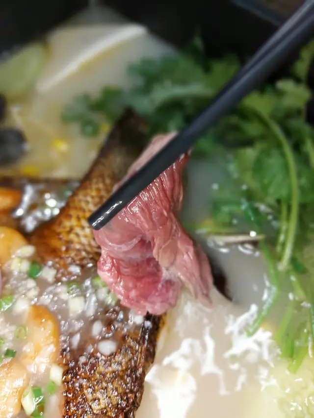 筍殼魚嘅魚肉好耐烤,我哋將鍋燒咗超過嗰多鐘,魚肉仍沒有散開,口感仍結實有鮮魚肉味