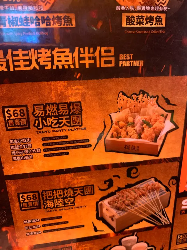 炸雞」,層次感十足。而「醬香味烤魚」適合不嗜辣者,醬香醇厚,鹹鮮回甘,尤其適合拌飯。