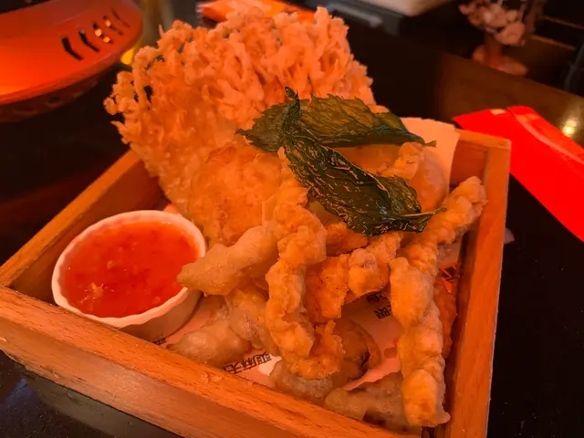 小食籃裡的「脆脆山藥片」和「椒鹽金針菇」增添酥脆口感,配上免費的自助冰粉,清甜解膩,為這頓烤魚大餐畫上完美句點。整體而言,味道豐富,性價比高,值得一試!