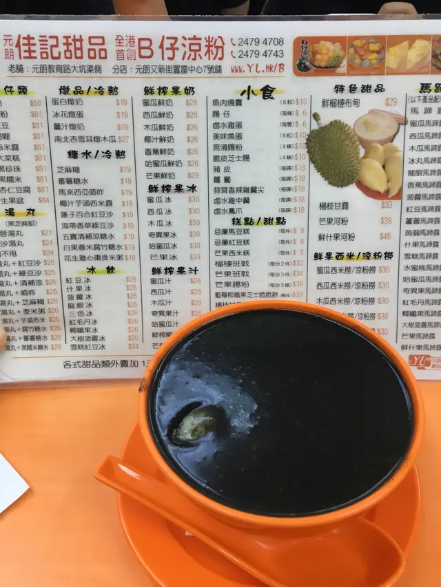 無人不曉既B仔 IzzychanmyLevel 32018-11-13279 views Follow 食完晚飯緊係食糖水啦由於之前有負面新聞我地無叫到涼粉而點左幾款比較經典既糖水芝麻糊加湯元及椰汁紫米露兩碗都超級甜雖然叫糖水姐,但完全無芝麻味湯元皮又硬,好似未有足夠時間溶雪紫米露純食佢米既口感可能以前真係好食既但就經唔起時間既考驗喇The above review is the personal opinion of a user which does not represent OpenRice's point of view.LikeShare無人不曉既B仔 佳記甜品 https://s.openrice.com/QrKT08W4n00Report Post Ratings1Taste2Decor2Service2Hygiene1ValueDining MethodDine In