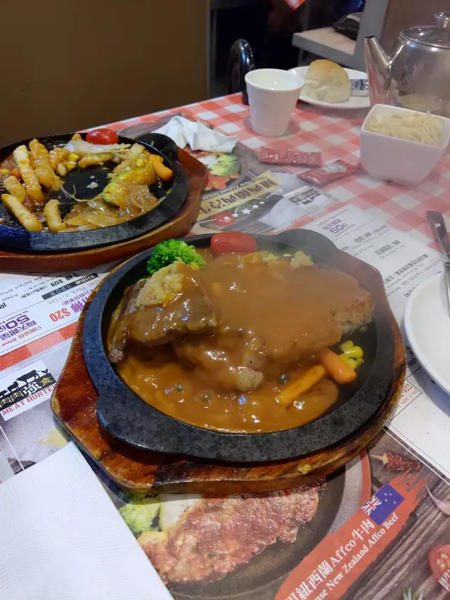 兩人一共花了二百多的鐵板餐, 相比其他知名的店舖更便宜, 質素與份量更好。當然上餐的次序與牛扒的肉和膏的比例也得調節一下。