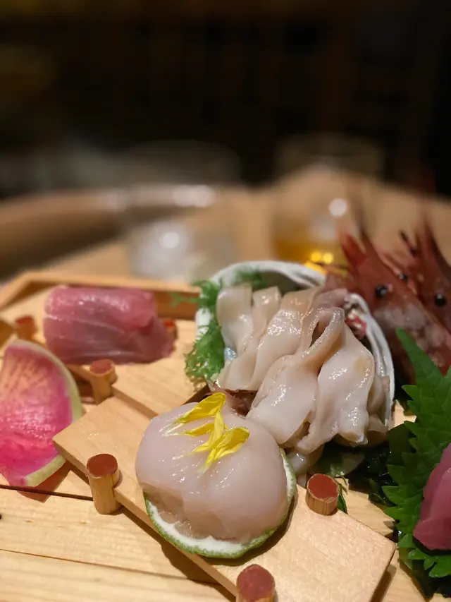 拼盤擺盤超級精美,我哋呢日嘅seasonal都好吸引🤩 有幾款特別印象深刻:北寄貝相當新鮮爽口、白子好綿滑配上特製醬汁好清爽、中拖大拖都無可挑剔,入口油脂感爆發🥰、帶子勁大粒又好香甜、仲有海膽質素都唔馬虎,好濃味帶點甘甜。十分推介呢個刺身拼盤!