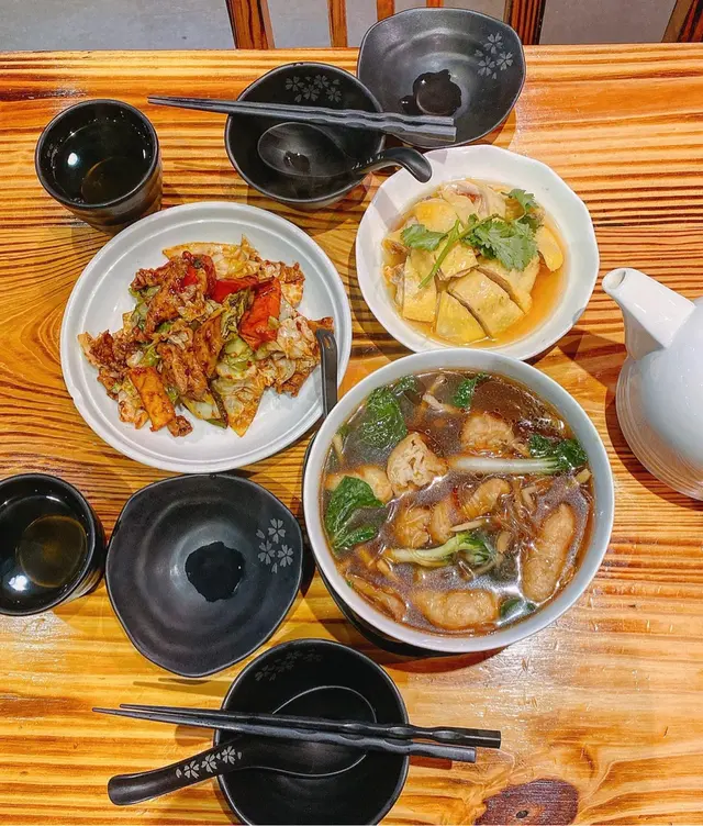 油豆腐粉絲·湯底是利用了黑蒜麻油所調配.顏色較為深色..而且粉絲&豆腐都吸收了湯底的精華.吃下氣騰騰的香蒜麻油氣味.味道不會太濃太鹹👍🏻..還配上冬菇.蝦米.榨菜等配料.令口感的層次大大提升更為美味👀不過略嫌湯底有點油粉絲有點小和湯底有點油.吃完過後滿嘴都是油油的..