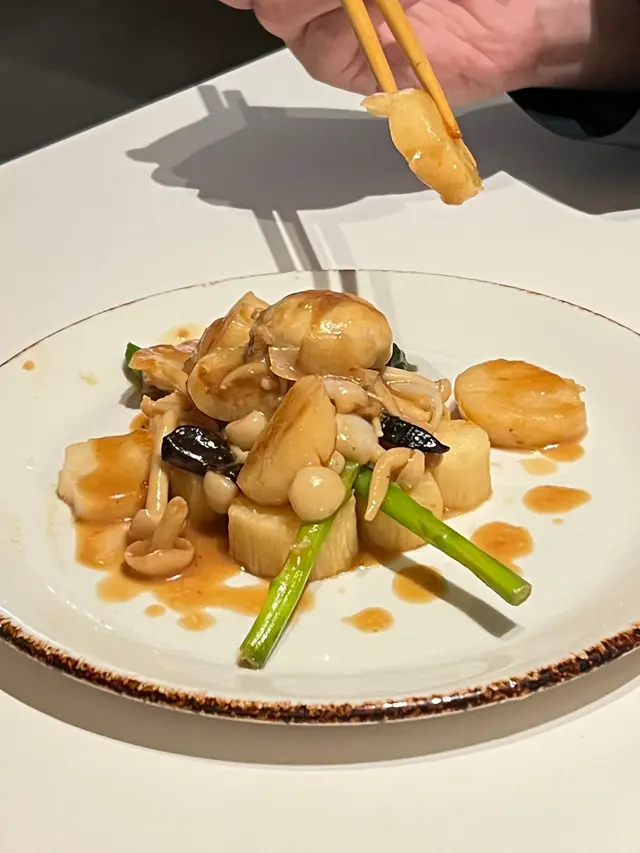 今次吖咗季節小菜松仁薑蓉菠菜同主菜黑蒜香煎帶子,味道正常發揮,而令我驚喜嘅菜式係姬松茸竹笙排湯同酥炸黃花魚😋養生而且不加味精。推薦大家一定要叫黑蒜香煎帶子!粒粒鮮甜彈牙嘅帶子,再加上唔同種類嘅菇菇配搭上我最鍾意嘅蘆筍, 同健康嘅淮山,味道惹味之餘,係健康之選👅👍🏻
