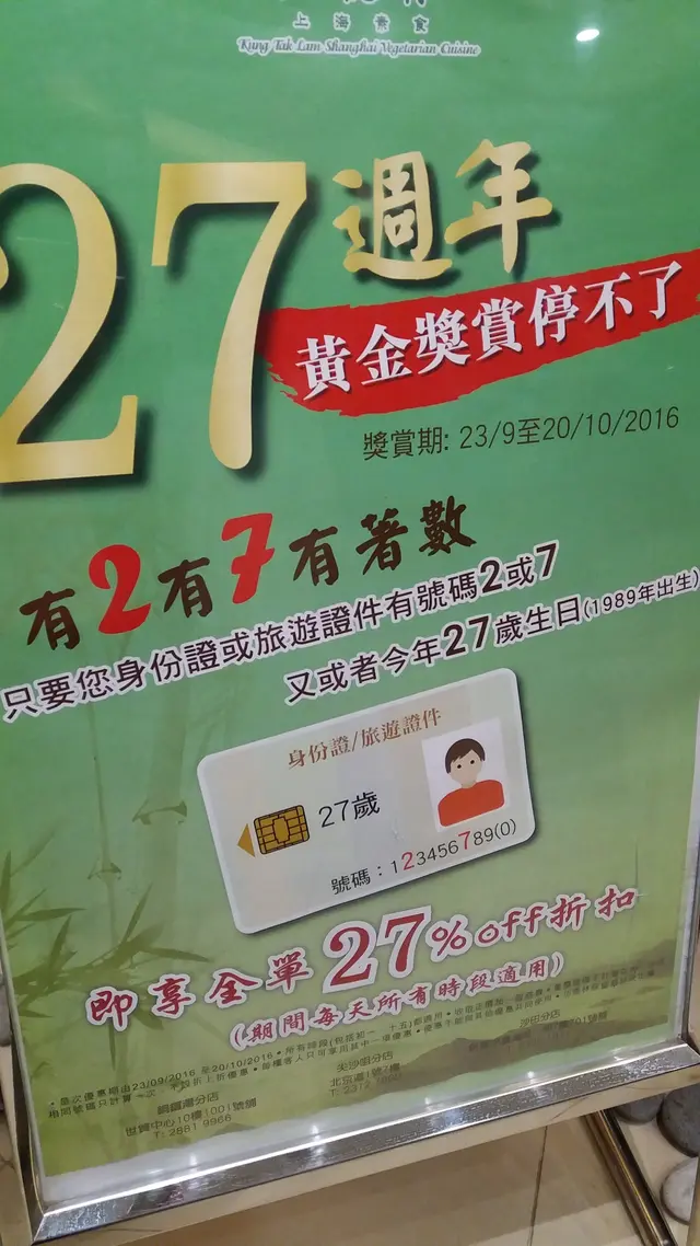 今日茹素,健康又美味,最重要係有27% off。