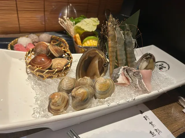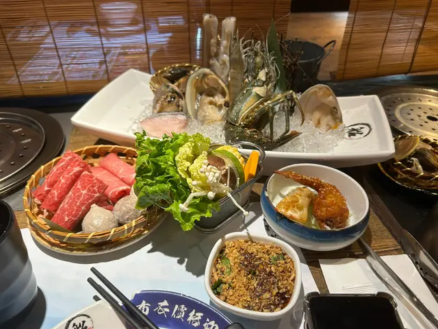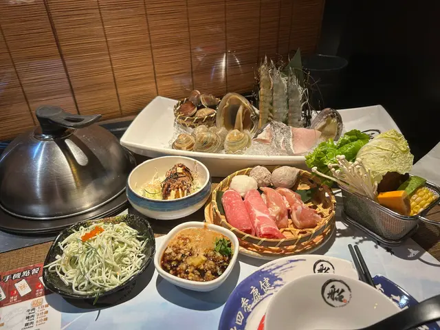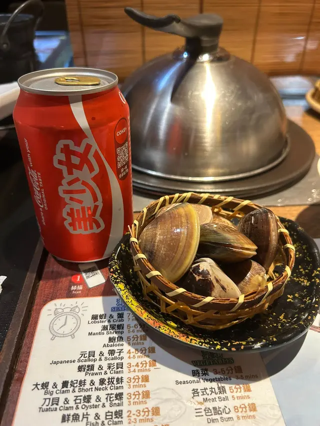 海鮮有白蜆、大蜆、北寄貝、蝦、鮑魚同鮮魚片, 全部新鮮鮮甜, 口感豐富。肉類可 3揀2咗 美國肥牛/ 豚肉/雞肉,雞肉滑嫩,豚肉就正常唔嚡. 仲有三寶丸 . 小食炸物章魚丸.