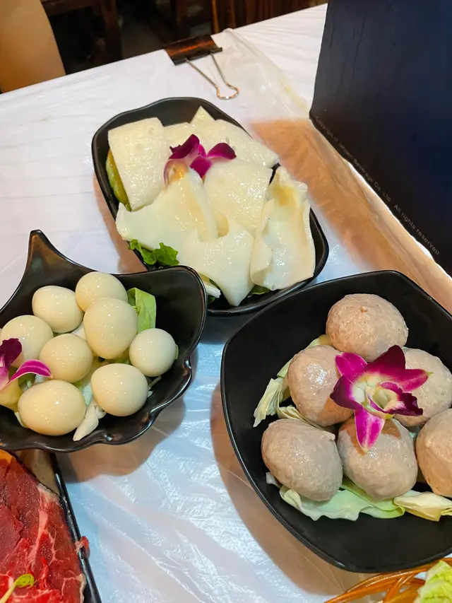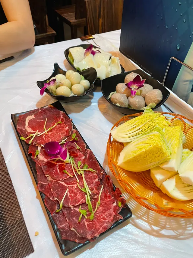 可能飲咗個湯同食咗花膠雞,都開始有少少半飽。我哋就叫左比較瘦嘅牛𦟌肉,之後亦都見到有個幾得意嘅牛部位,叫牛黃喉。牛皇喉食落感覺似魷魚,質感偏爽。跟住佢仲有一個特色嘅院係爆漿薑汁皮蛋貢丸。雖然聽落好似好奇怪,但食落去個味道好似食小籠包裏邊個肉餡咁。因為小籠包個肉餡,通常都係有落少少薑落去咁。