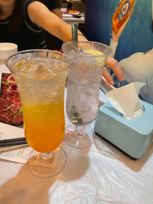 餐飲除咗普通汽水,佢哋都仲有一啲梳打飲品。我哋點咗青檸梳打同百香果梳打。