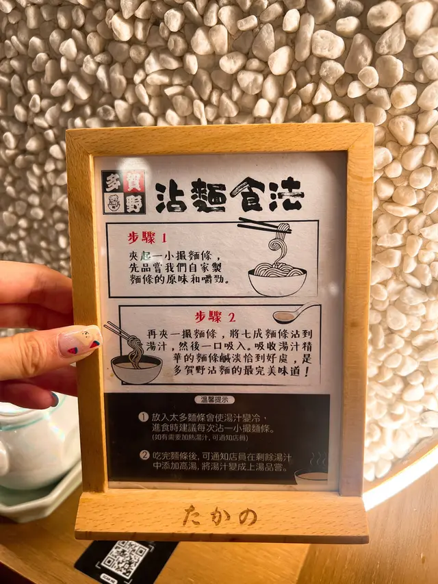 桌子上放了一塊牌子講解沾麵食法,好貼心,用餐時間只有60分鐘,上菜速度快及店員服務友善,不過以一碗拉麵要百多元,價錢略為貴🤑,拉麵控的朋友可以不妨一試