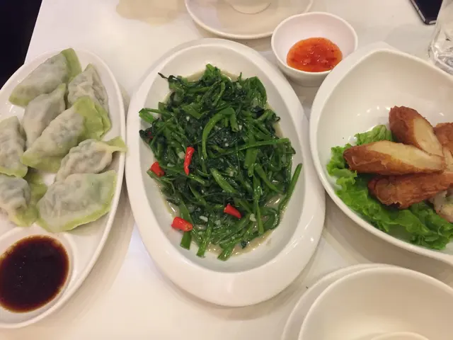 餃子,腐乳通菜,煎封馬友。