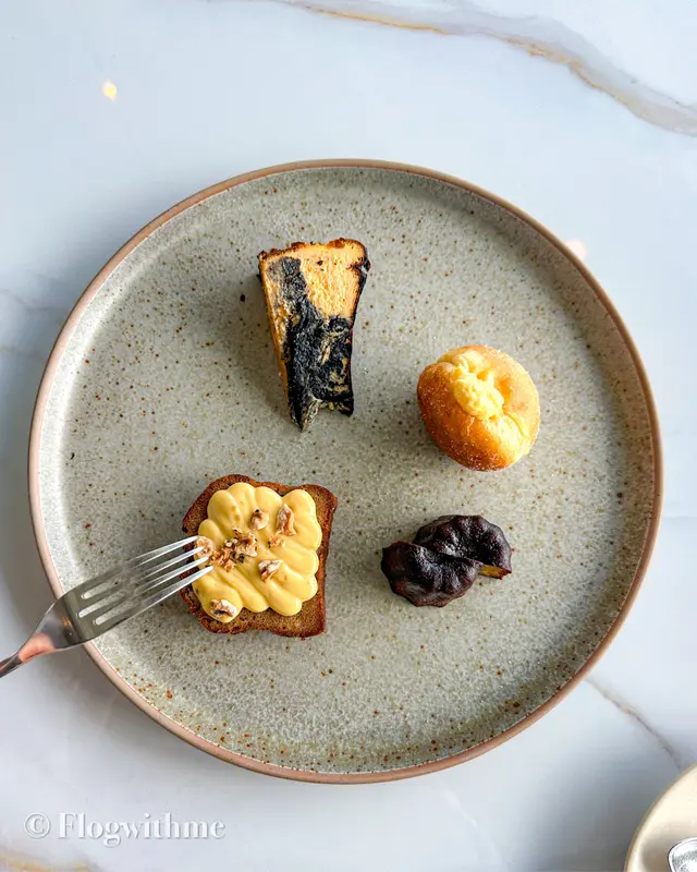 Chef’s dessert platter (+$100) 都好驚喜,估唔到呢個價錢就有四件甜品,包括Canele、黑芝麻巴斯克芝士蛋糕、donut同埋banana cake,唔講得笑呢個banana cake係近期食過數一數二出色嘅,個香蕉味好濃郁,而且夠濕潤🍌黑芝麻巴斯克蛋糕直程係芝麻味濃郁到傻🖤入邊仲夾咗啲芝麻醬,中間做到軟心效果,幾建議叫一份同朋友share🫡