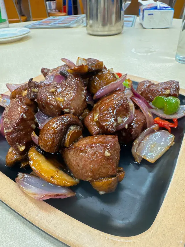 首先上嚟嘅係蒜香蘑菇牛柳粒,呢啲牛柳粒真係超級大粒!每一口都咬落去特別滿足,肉質鮮嫩,搭配上香濃嘅蒜香同蘑菇,真係食得我心裡暖暖!牛肉嘅味道非常鮮明,與蒜香交相輝映,令人一試成主顧,真係好推介!