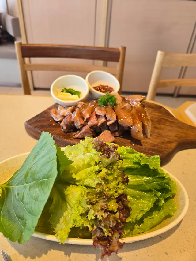 彈牙肉夠嫩,夾埋生菜紫蘇葉同蒜頭一齊食,清新又唔膩,辣醬味道夠惹味,幾有層次。