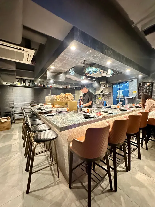 餐廳吧枱設計,坐喺度可以睇到師傅現場烹調烹調,好友日本居酒屋氣氛