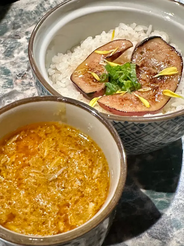 非常足料蟹膏,蓋滿成碗飯,配埋入口即化炙燒紅酒鵝肝,真係好滿足😌