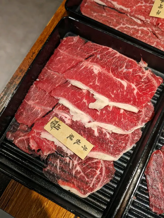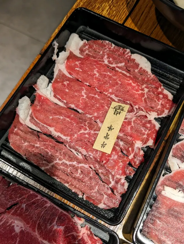 我哋每款牛都點左一份試試,set b可以點澳洲M5和牛肩胛、牛背峰、牛板鍵、薄切門柳、牛五花腩。一份就係以上嘅份量,每人每款兩三片唔會太多,不妨第一round試下各款肉類。第一次食火鍋薄切封門柳,牛肉味係最濃,因為比較薄所以佢會偏細份,可以點多幾份。