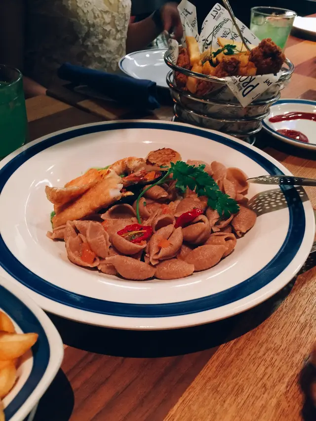 其餘的食品好似炸魚薯條同雞翼拼蒜香蛋黃醬拌炸薯條, 對我黎講都有點熱氣. 重未咳好的我都只好放棄. 不過份量真係好大. 薯條感覺有食不盡之感覺.