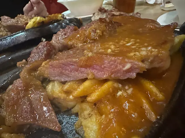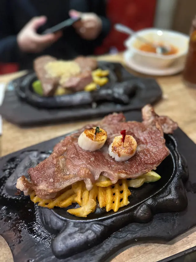 面頭兩粒帶子都幾大粒嫁,即使有蒜蓉汁都唔會蓋過左佢既味,肉質鮮嫩。點解會叫7成熟牛扒係因為自己唔太中意太生既牛,對於我黎講7成熟係岩岩好,不過對於媽咪黎講就可能靭左d。