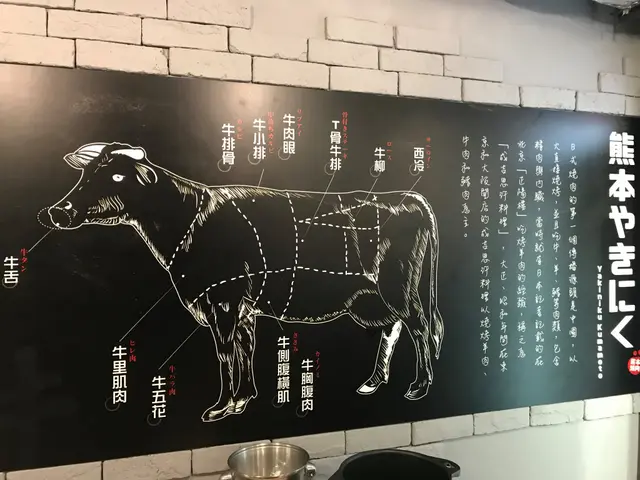 牆上掛著一大張牛的分報圖, 大家清楚知道食緊的部份在那裡