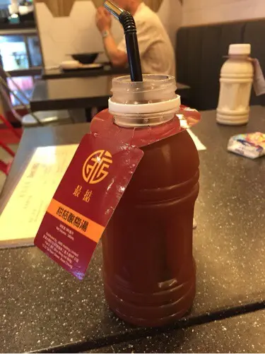 食食下,啲店員(懷疑係店主😂)見我地食左咁耐又無野飲就極力推介左店鋪自家推出既健康飲品系列俾我地。好啦,咁就黎個柑桔酸梅湯啦。