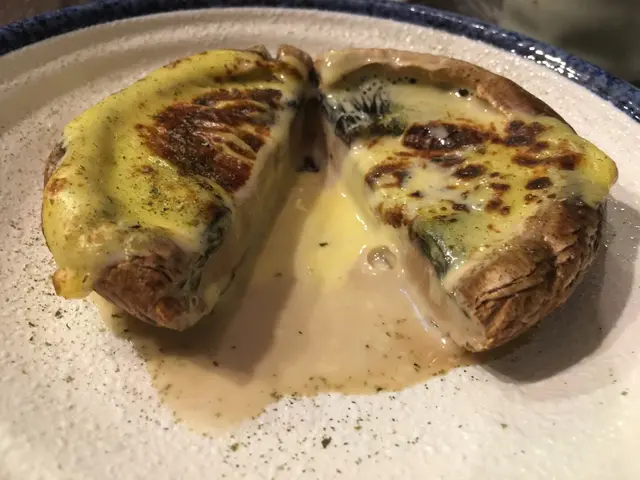 大啡菇芝士燒原個大啡菇拎去燒,上層加上一塊芝士,燒出黎芝士經燒過後帶少少焦香及微微溶化包住成個啡菇既面.啡菇仍然鎖住水份一切開就同芝士融和為一變成芝士汁.
