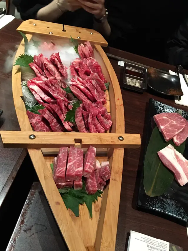 成隻船上枱全家人即刻相機食先,因為實在太豐富, 牛肉色澤鮮艷, 廚師切到牛肉唔太厚身, 每邊輕輕烤下就食得