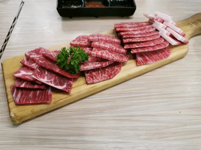 先嚟係安格斯牛肉眼,牛味濃郁,牛舌需然厚切,但都好冧,厚切五花肉同特選豚肩都好冧,配燒汁更加好味,兩個鐘嘅任食時間好快就夠,唯有下次再來。
