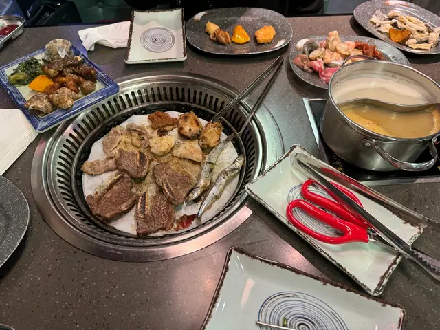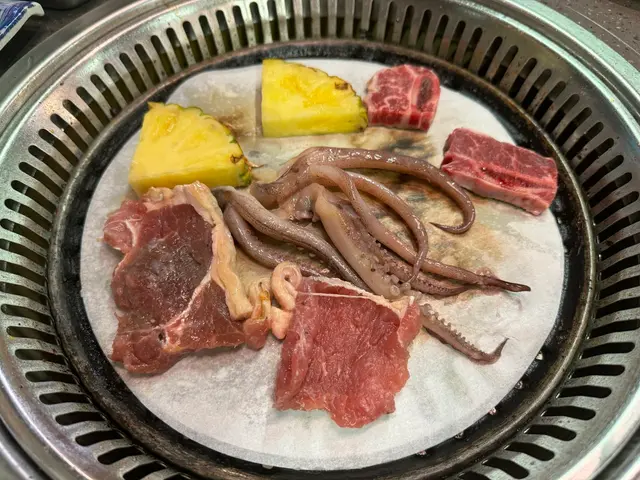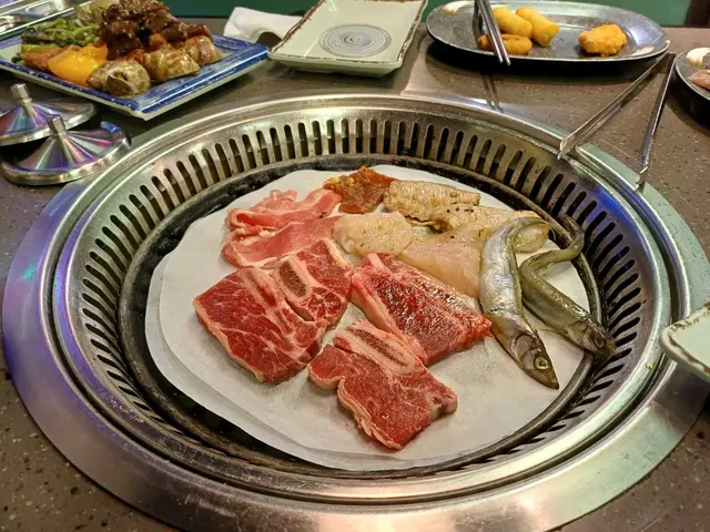 燒烤的肉類非常多款式,有牛仔骨、雞軟骨、原味豬扒、泰式豬頸肉、韓式麻香豬扒、紅酒牛扒、黑椒牛扒、餃子、紅腸、日式餃子、煙鴨胸、韓式三文魚骨腩、帆立貝、菠蘿、煙肉片、金沙骨及多春魚...…等。