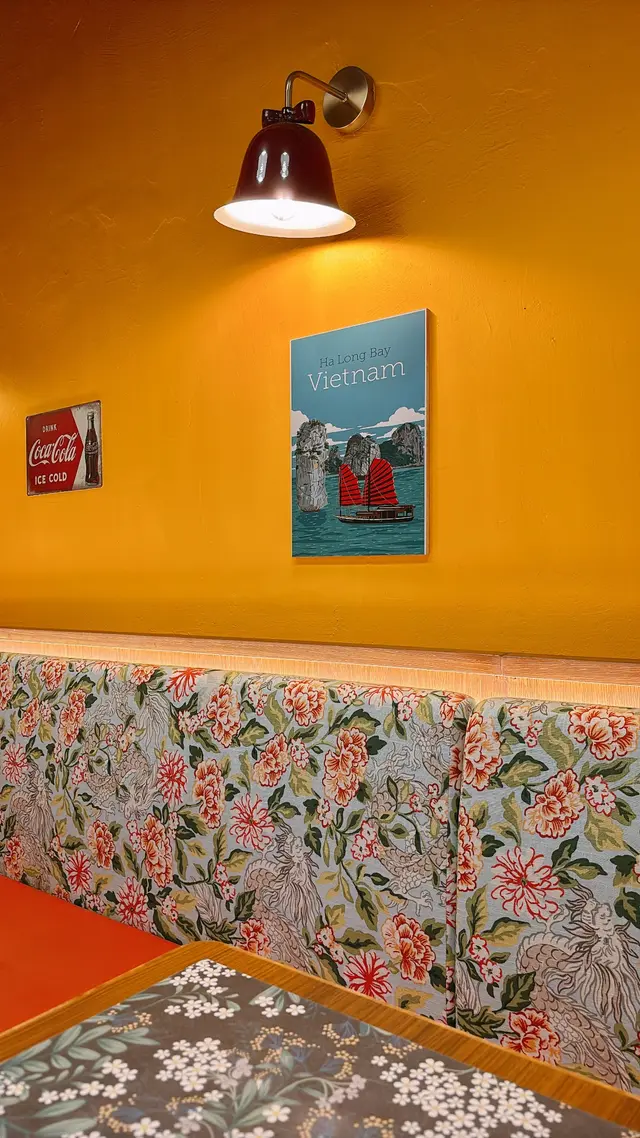 前晚同閨蜜撐枱腳,去咗太古「越大俠」解暑💦。餐廳燈光偏黃,枱凳排得密麻麻,有啲似街坊小館格局,冷氣夠涼🥶。牆身掛住幾幅越南風情畫,播住輕快嘅竹笛音樂,幾啱傾偈嘅氣氛🎋。