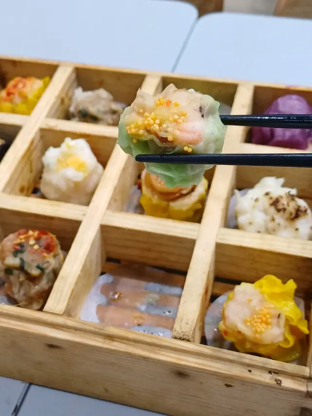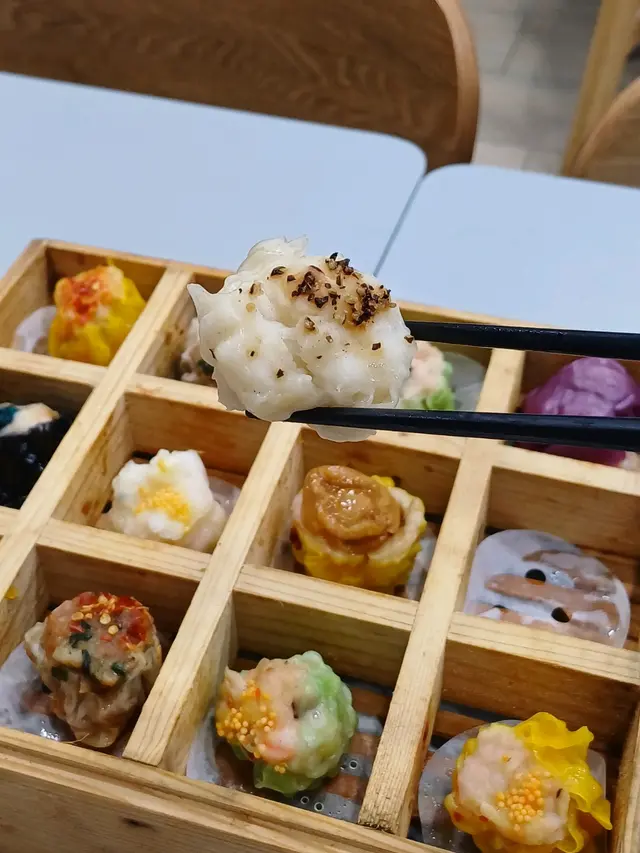 拼盤裡面有鮑魚燒賣、懷舊燒賣皇、梅菜扣肉燒賣、爆汁墨魚燒賣、幹蒸牛肉燒賣、芝士墨魚燒賣、番茄海鮮燒賣……等,足有12件燒賣,真是名符其實的世一……!