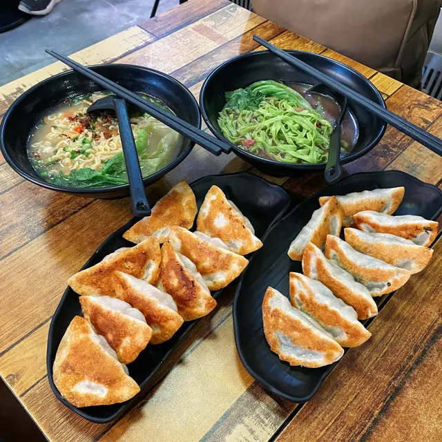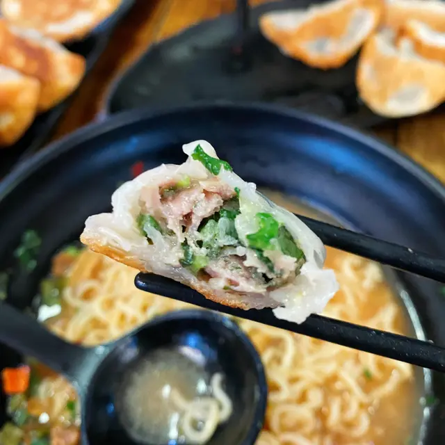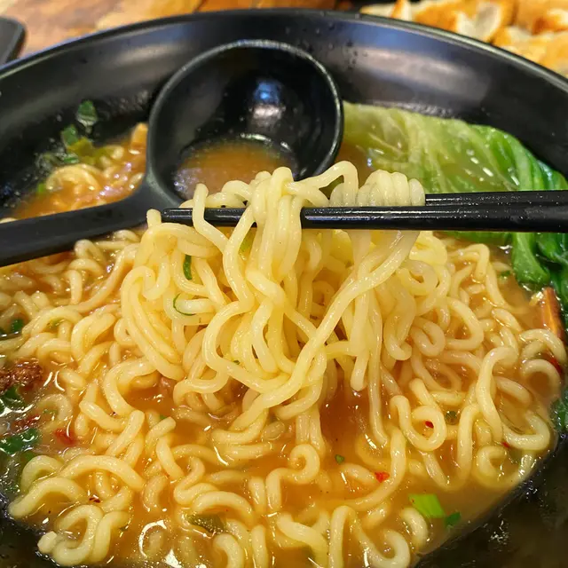 麵會先用豬骨湯,另加辛辣粉,可以按自己喜好加幾多粉,辛辣麵配煎餃真係一絕!