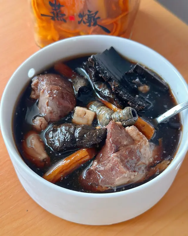 壯腰補腎。湯汁深色濃郁,藥材非常足料。嫩滑高質豬展配上精選藥材杜仲、巴戟、牛大力,👍可以幫父親緩解腰腿酸痛,同時改善腎功能。