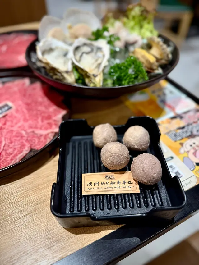 套餐奉送:澳洲M9和牛牛丸(2粒)、海鮮拼盤、