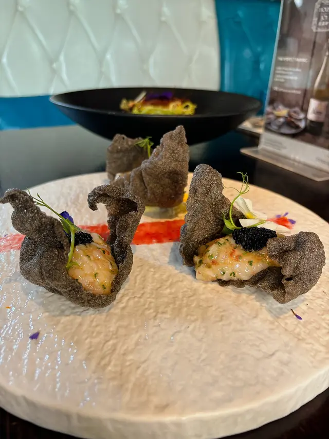 西班牙紅蝦他他墨魚脆片配辣根油醋汁👌