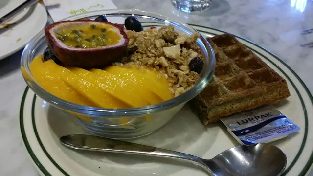 芒果熱情果乳酪與窩夫一起上,前者新鮮的生果帶出香甜味道,乳酪味道也是十分清新