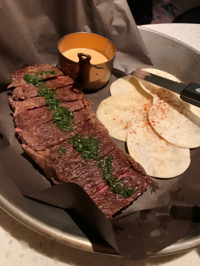 然後到粉嫩和牛配青醬Tortilla