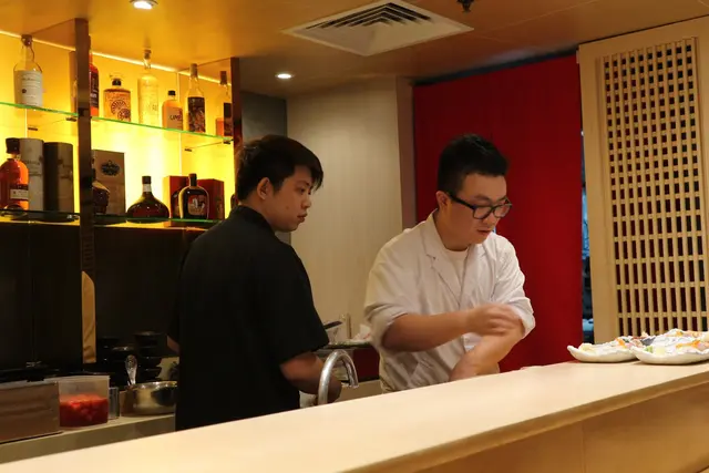 圍繞吧枱,最接近師傅嘅位置,約可坐七、八人,記得預訂位置。師傅就喺面前製作,透明度高,亦係廚師發辦嘅一大特色