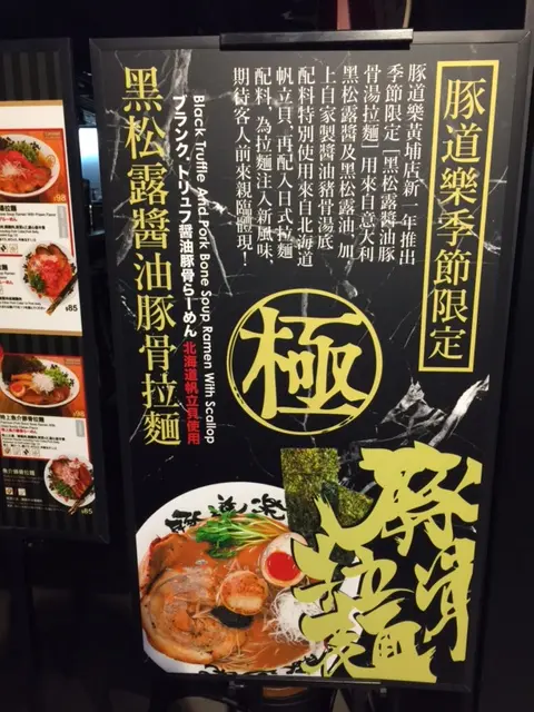 濃厚的豚骨白湯底加了黑松露醬,令每一口湯都充滿黑松露的味道。麵條選了較幼身的博多系直麵,麵質爽彈帶點煙靭。
