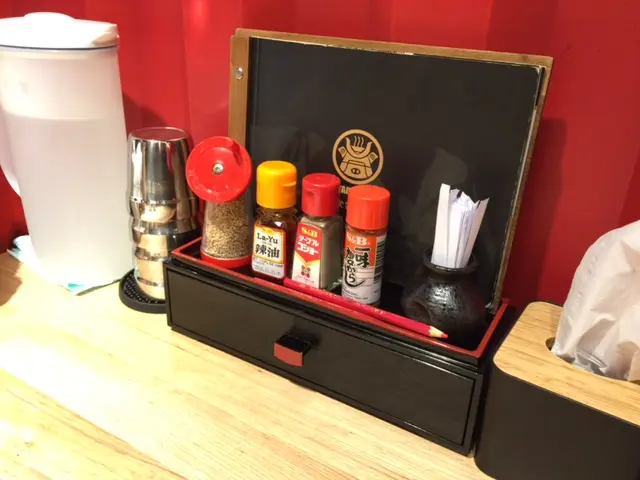 每枱放了一壼水,紙巾、調味料