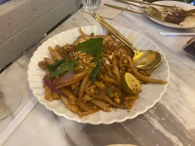 類似炒河粉的菜式,口感同材料都比較特別。配合肉碎蛋碎洋蔥碎一齊炒,增加菜式的口感同咬口。